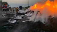 Видео — Забитый шинами прицеп фуры сгорел дотла на дороге Бишкек—Ош