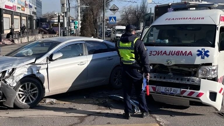 В Бишкеке столкнулись такси и машина скорой помощи. Есть пострадавшие