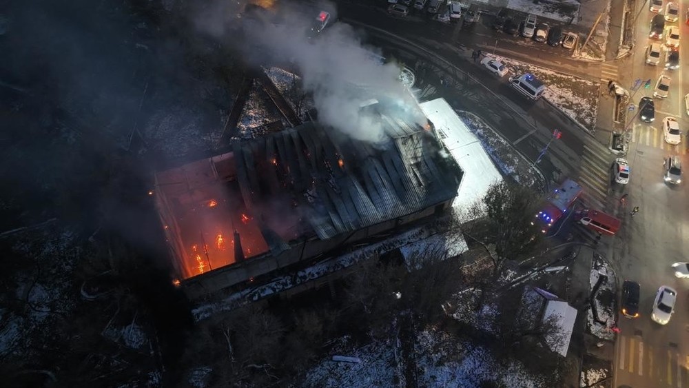 Пожар в здании бывшего кинотеатра «Чатыр-Куль». На месте работают 4 пожарных расчета
