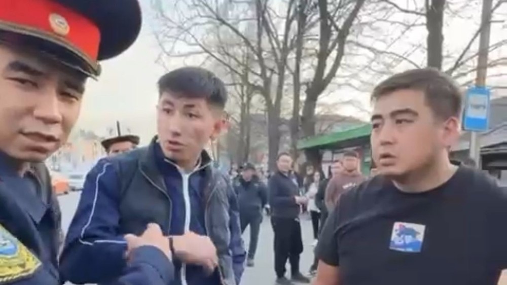 На Ошском рынке таксист заблокировал остановку, а его друг вызвал на драку патрульного милиционера