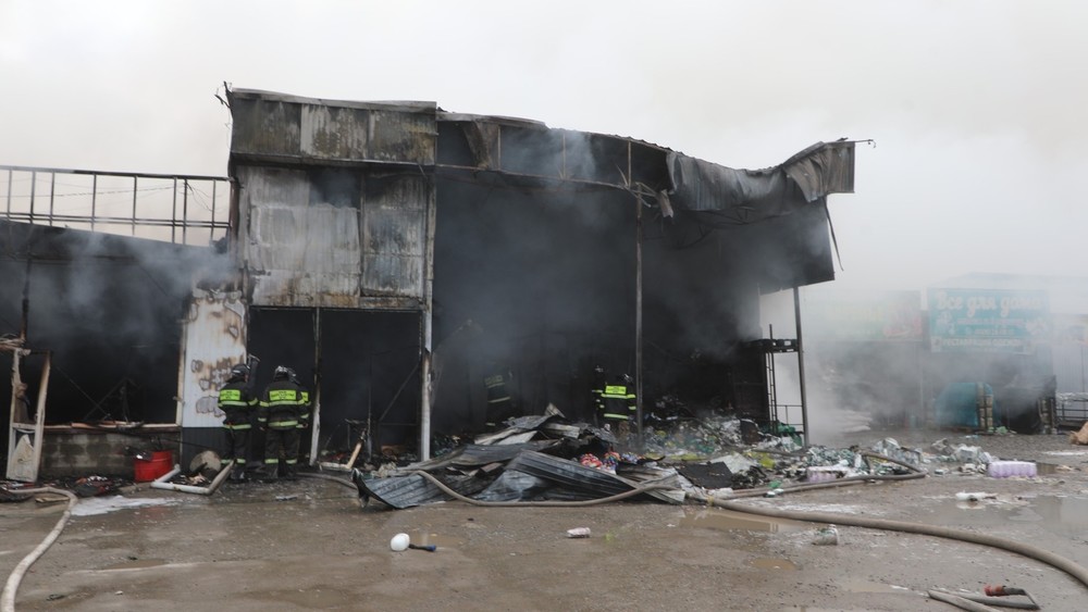 Пожар площадью 900 кв.м на рынке «Азиз» в Бишкеке полностью ликвидирован